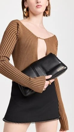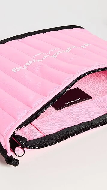 Quilted technical fabric composes this boxy, mid-size Alexander Wang bag, which gains a touch of eye-catching style from prominent logo lettering in a contrasting shade.