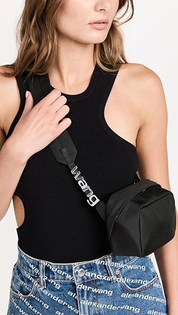 Compact and minimalist, this Alexander Wang camera bag is crafted from sturdy black ballistic fabric and accented with polished logo lettering at the strap.