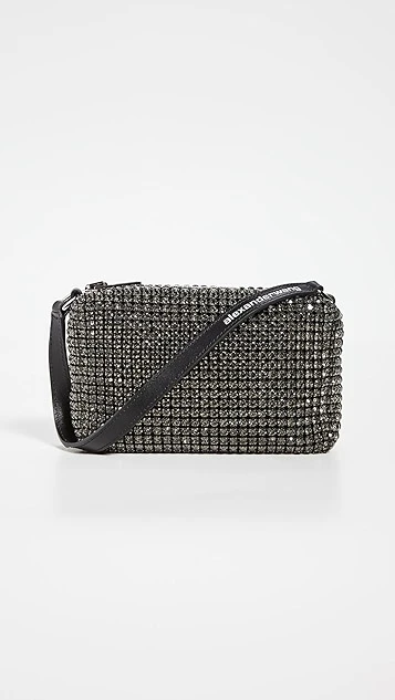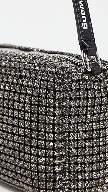 Embellished with allover rhinestones and finished with a slim logo strap, this sized-down Alexander Wang pouch is a dazzling bag to add to your next night-on-the-town ensemble.