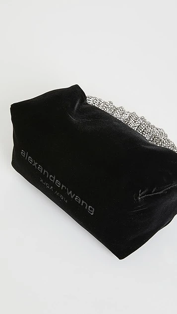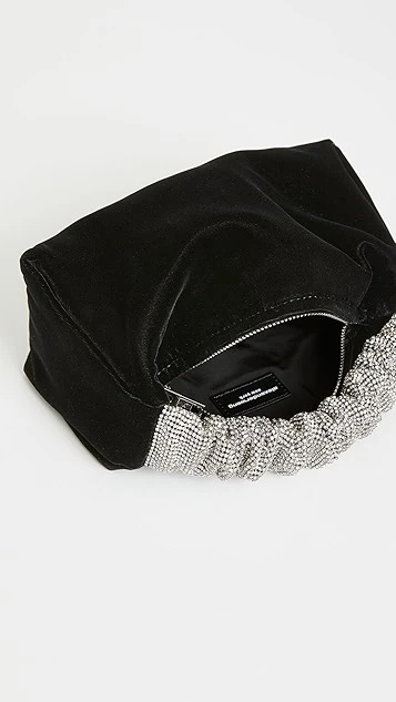 A shimmery version of Alexander Wang’s signature Scrunchie bag, crafted from rich velvet, conveniently sized, and topped with a distinctive handle.