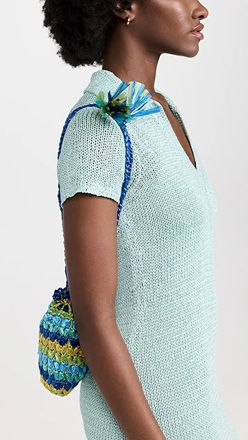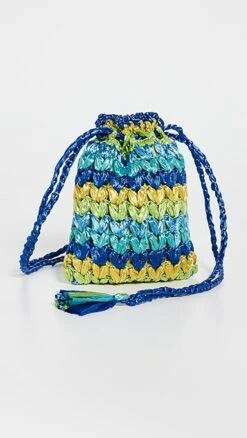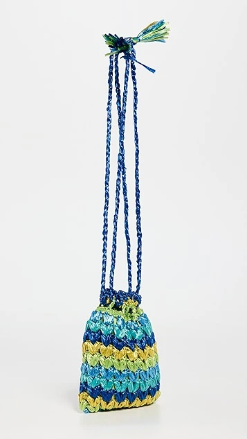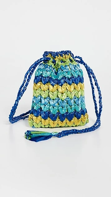 Sweet and petite, this Caterina Bertini mini bag is crafted from multicolor woven raffia, and is suspended from a slender tasseled drawstring.