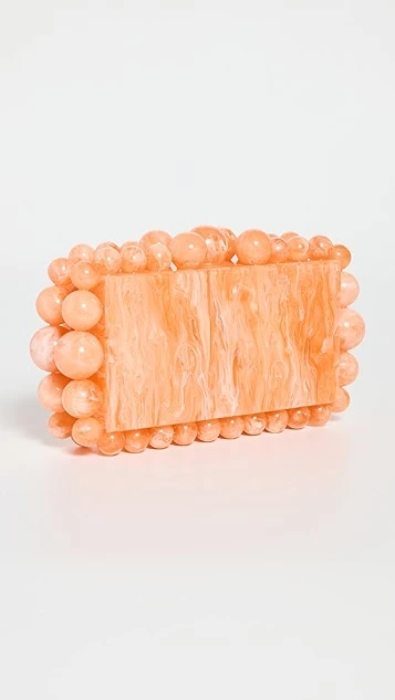 Featuring a structured, rectangular silhouette accented with bold bead trim, this Cult Gaia clutch is a polished bag from one our favorite brands for statement accessories.