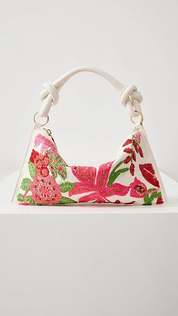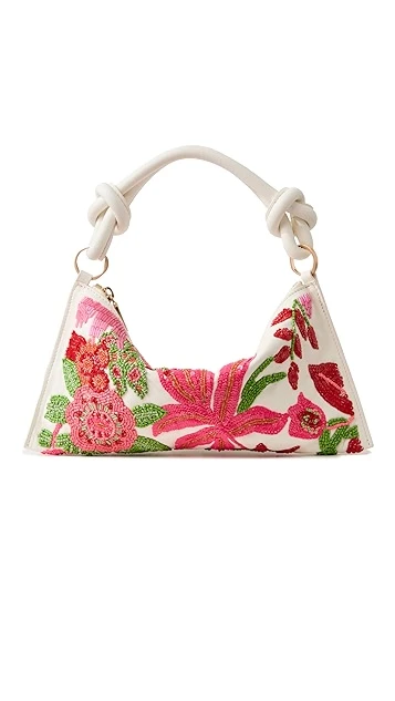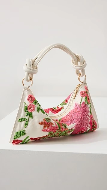 Blending glamour with ease, this Cult Gaia bag has a soft and slouchy silhouette covered with floral beading and is an alluring addition to daytime or night-out looks.