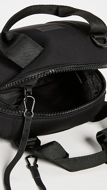 A scaled-down Dagne Dover mini bag, crafted from resilient neoprene, accented with a tonal logo patch, and outfitted with cross body strap.