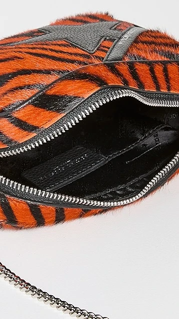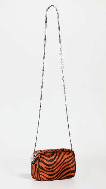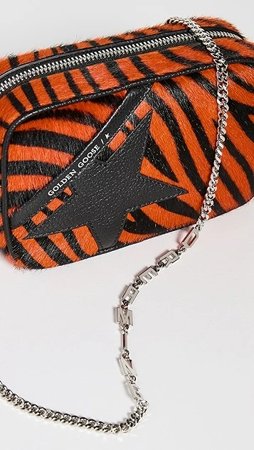 A signature and stylish Golden Goose camera bag, featuring a mix of supple leather and zebra-print haircalf and finished with a high-shine chain strap.