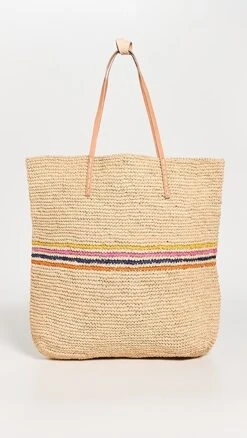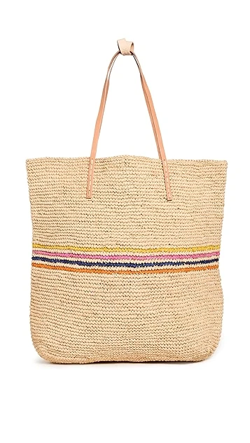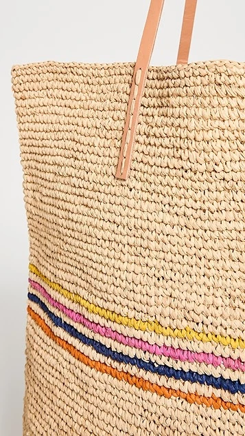 A trio of colorful stripes add a signature touch of punctuation to this voluminous Hat Attack straw tote, which is topped with slender leather handles.