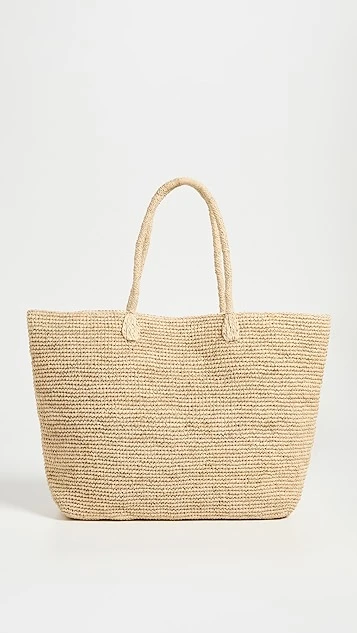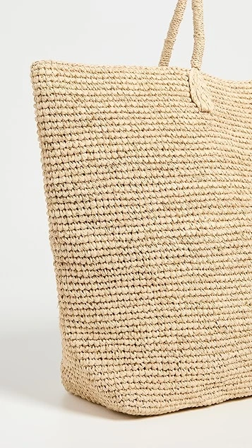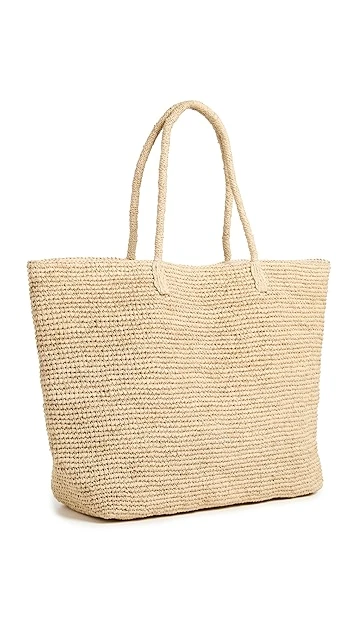 Roomy enough to take on trips to the beach or impromptu shopping trips, this Hat Attack tote has a classic summery feel with a slouchy raffia construction and simple natural look.