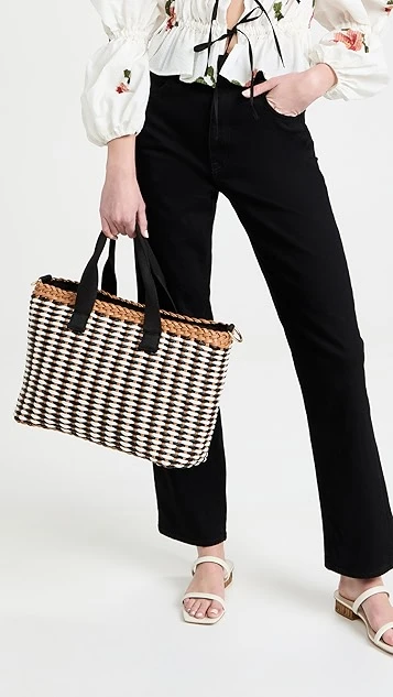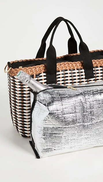 A timeless summer tote with added functionality, this L*Space bag is crafted in wicker-style woven faux leather and comes equipped with a removable, insulated aluminum lining so you can keep your beach-ready beverages cool for your next of day of fun in the sun.