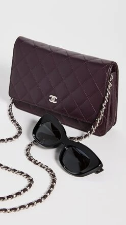 What Goes Around Comes Around Chanel Purple Lambskin Chain Wallet