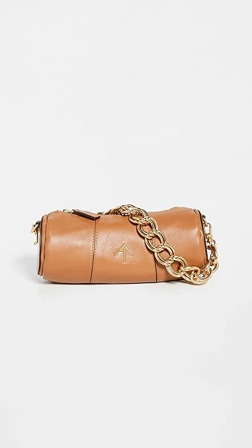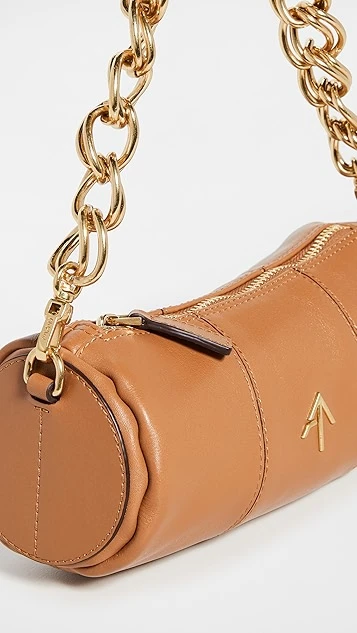 The MANU Atelier XX Mini Cylinder Bag is crafted from smooth calfskin leather, in a structured cylinder shape, and is detailed with gold-tone hardware. Its thick chain strap adds an extra-cool vibe for day or night.