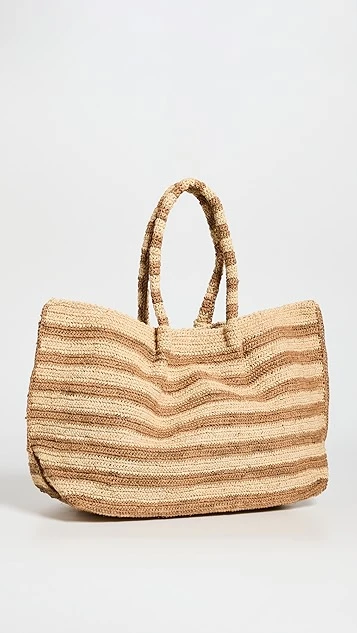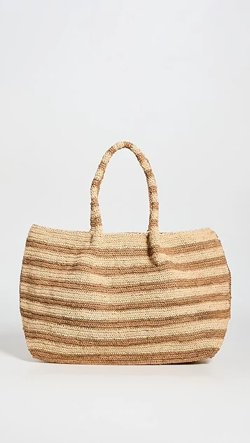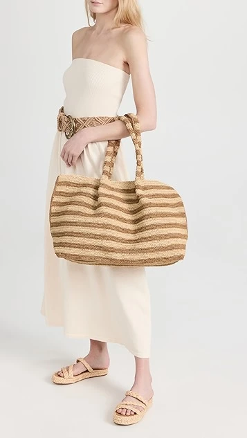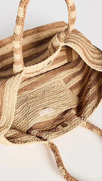 New favorite tote alert! This Mar Y Sol Amara raffia bag provides ample space for all your sunny day essentials, and is accented with a muted mix of stripes.