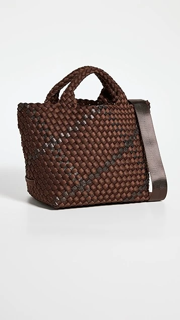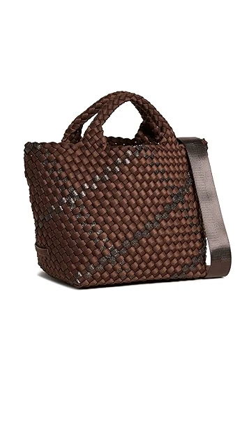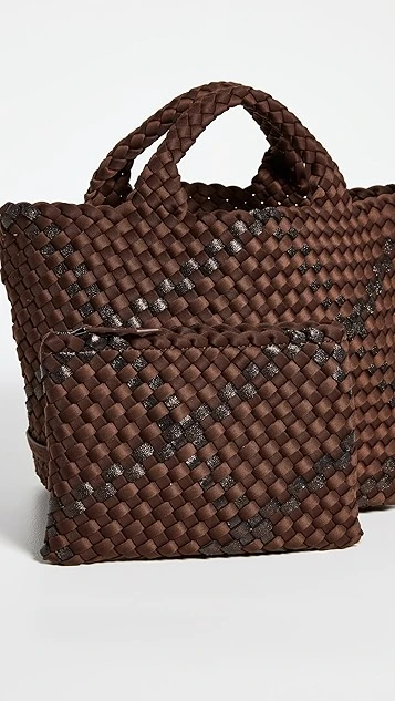 A subtly patterned version of Naghedi’s signature St Barths mini tote, crafted from the label’s woven neoprene.