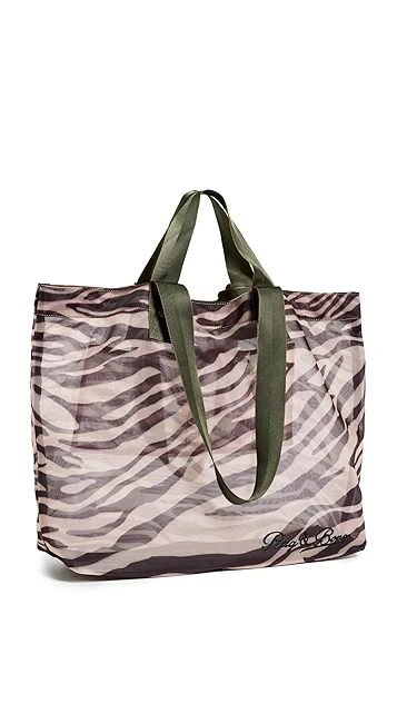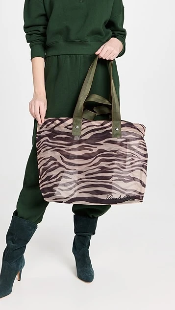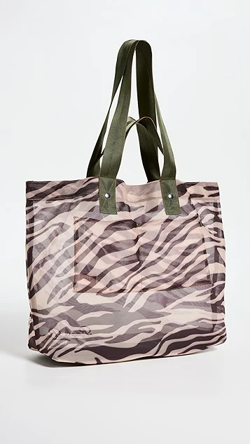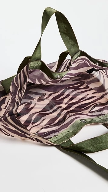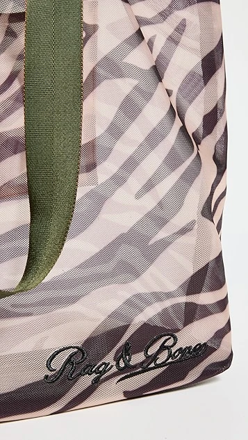 Featuring ample space and style to spare, this Rag & Bone Addison tote is crafted from sheer yet study mesh, and is detailed with an eye-catching animal print and embroidered logo script at the base.