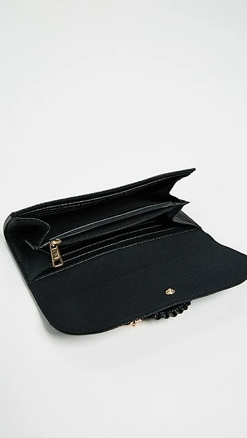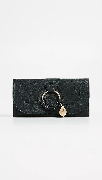 A roomy wallet with a dose of signature style. This See by Chloe wallet boasts the brand’s classic braided ring and key charm that makes it instantly recognizable as part of the Hana collection.