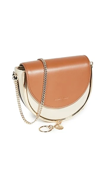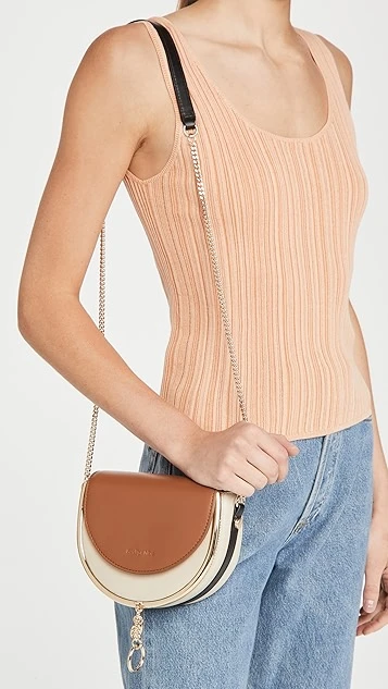 A unique and sophisticated take on a classic saddle bag from See by Chloé, featuring three shades of smooth leather and glossy, gold-tone hardware.