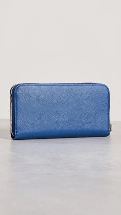 What Goes Around Comes Around Prada Blue Saffiano Zip Around Wallet