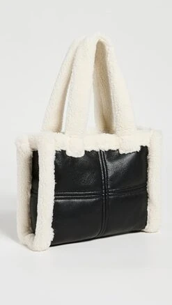 Crafted from faux leather and trimmed with bright-white sherpa, this scaled-down STAND STUDIO tote is an everyday essential with eye-catching style.