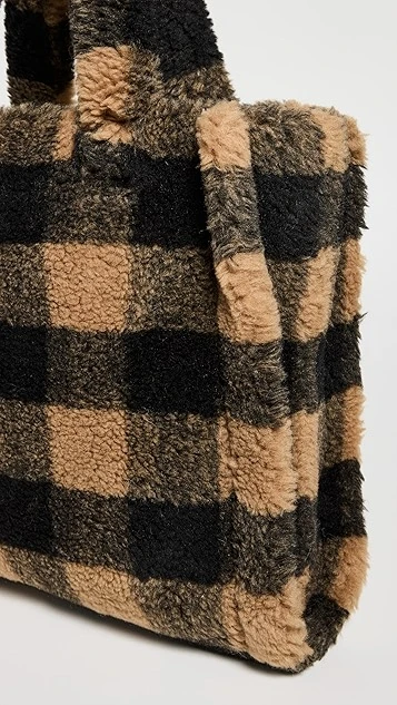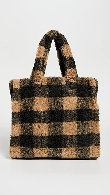 A spacious and stylish accessory that’s sure to stand out. This STAND STUDIO tote is completely covered in plush faux fur, and is accented with classic buffalo plaid patterning in a dark color scheme.