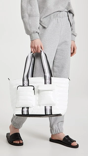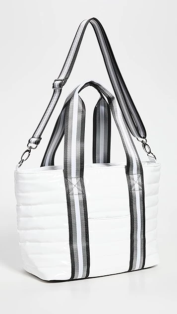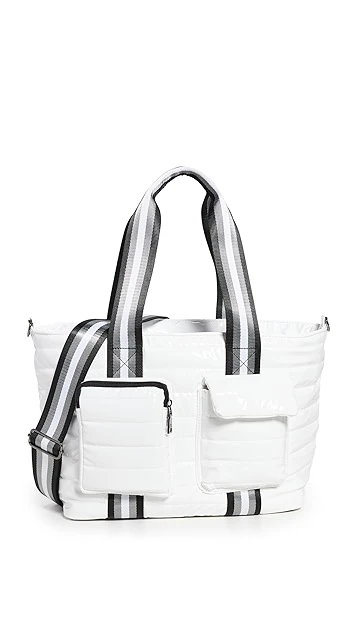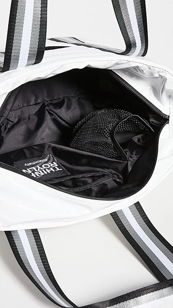 Scaled-down yet still spacious, this signature Think Royln tote is outfitted with sporty striped straps and a pair of handy exterior pockets.
