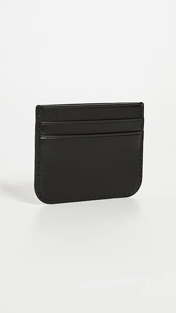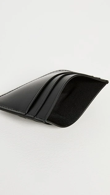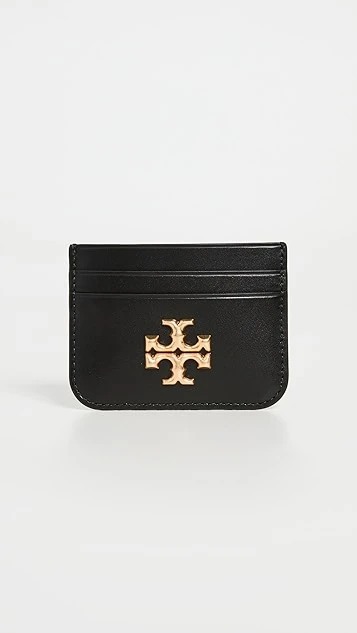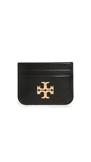 A polished logo emblem details this smooth-leather card case from Tory Burch.