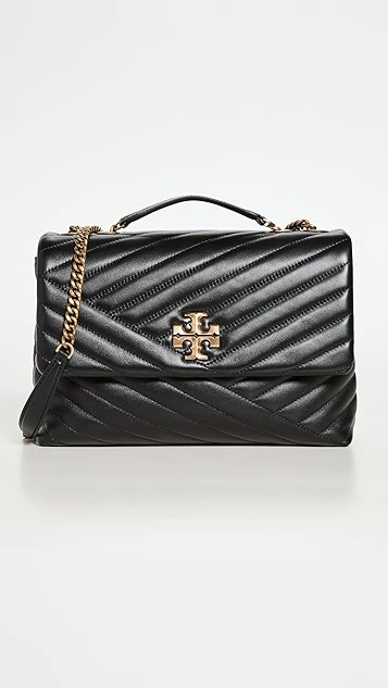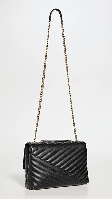 Crafted in chevron quilted leather and featuring a gold-tone version of the label’s distinctive double T logo, this Tory Burch bag features an adjustable linked chain strap that can be styled doubled or long.