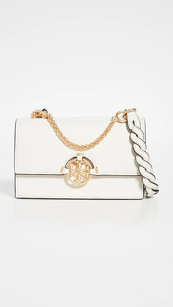 A refresh of the label’s signature Miller silhouette, this Tory Burch bag is a sized-down crossbody that can easily transition from day to night. Sleek and structured in rich, pebbled leather, this small carryall gets a touch of polish from the braided strap and gold-tone hardware.