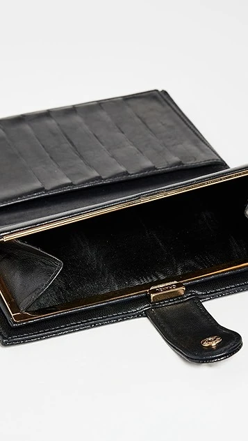 - Interior bill compartment, clasp compartment, two slip pockets and six card slots