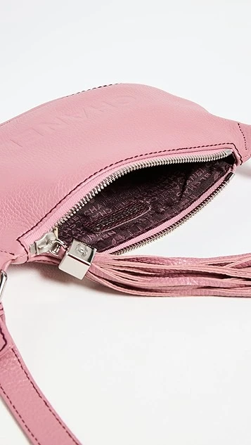 - Zip at top with tassel accent